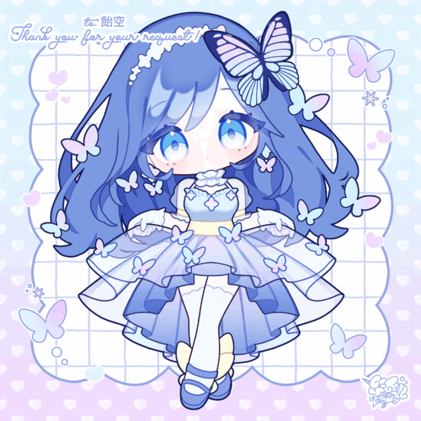 ▶︎キーワード:【青髪/シースルー/蝶々/ふんわり/花/青/水色/紫/ラベンダー/blue/lavender/butterfly/flower】